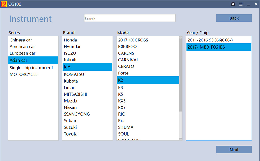 CG100 Prog III FULL поддерживает коррекцию пробега для китайских, европейских, американских и азиатских автомобилей. Интеллектуальный алгоритм автоматически анализирует данные, что исключает ошибки и ускоряет процесс. Поддерживаются марки: Audi, BMW, Mercedes‑Benz, Volkswagen, Ford, Toyota, Nissan, Honda, Hyundai, Geely, Chery, Great Wall и многие другие.