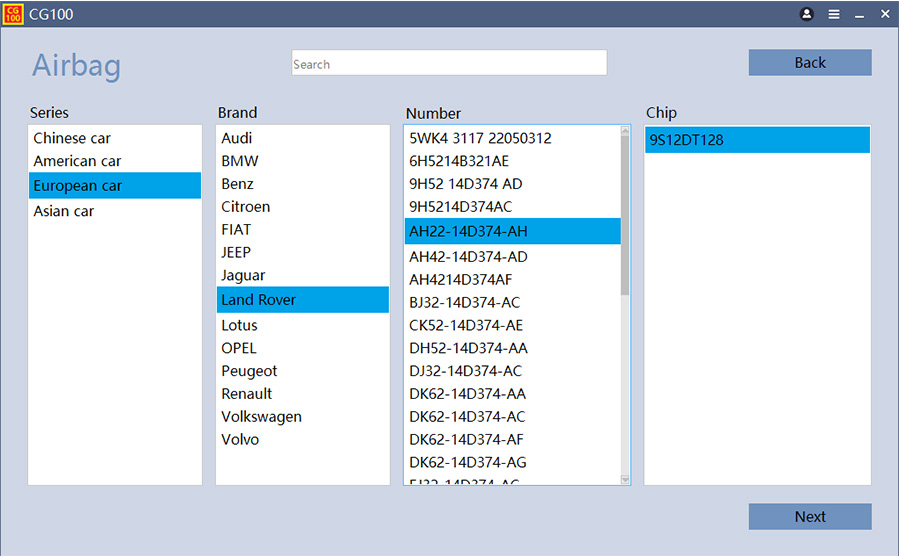 Программатор позволяет выполнять сброс ошибок подушек безопасности и восстановление работы блоков SRS. Поддерживаются автомобили Buick, Cadillac, Chevrolet, Ford, Jeep, BMW, Mercedes‑Benz, Audi, Toyota, Hyundai, Kia, Nissan, Subaru, Suzuki и десятки других марок.